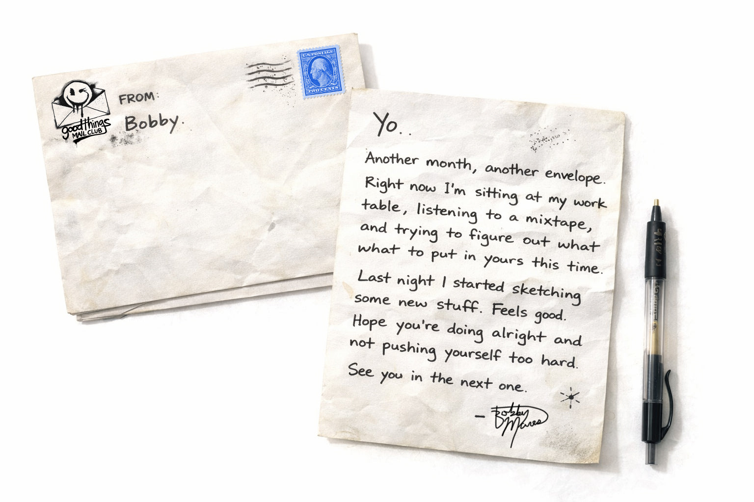 once a month, I send a real envelope to members of the GOODTHINGS MAIL CLUB.